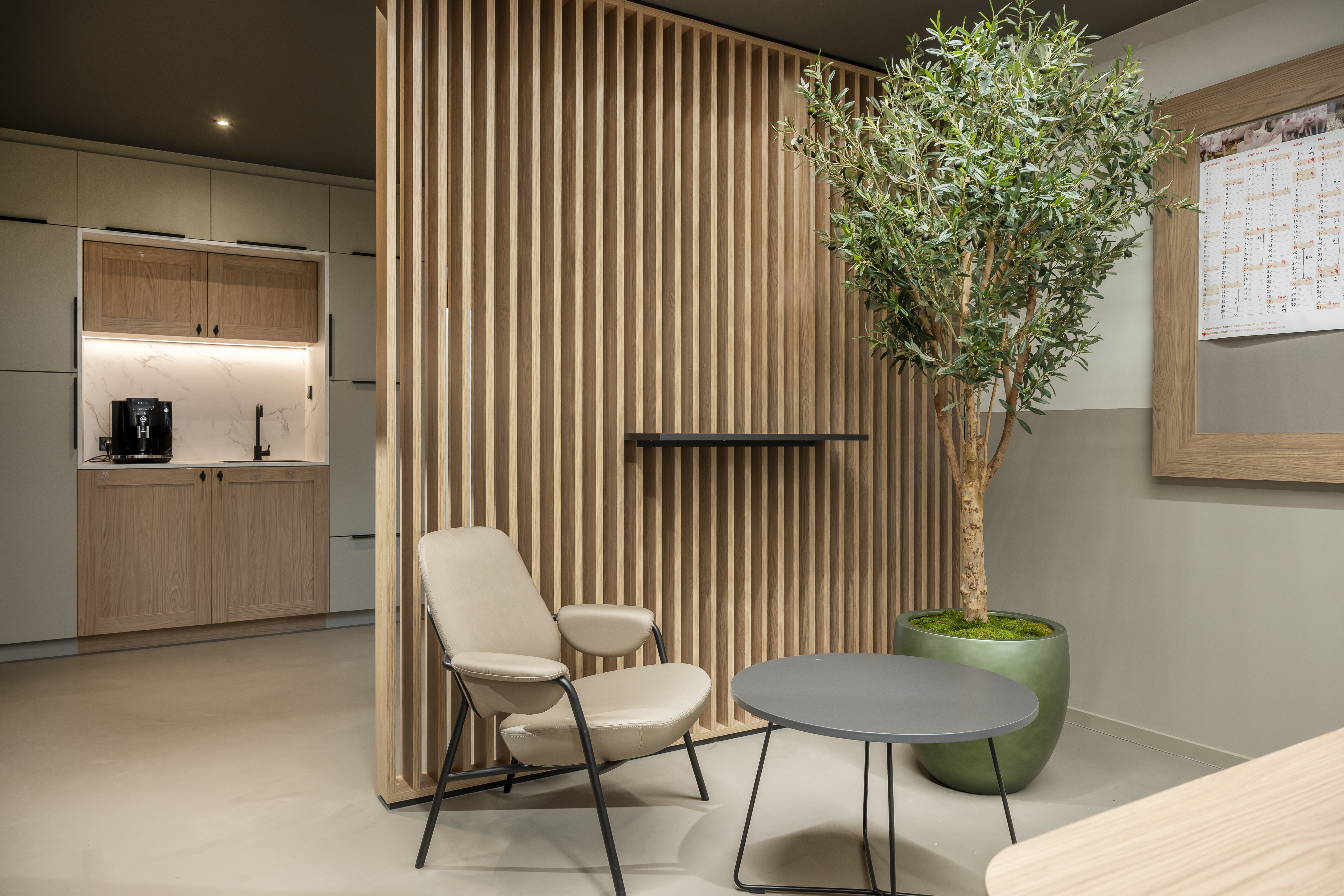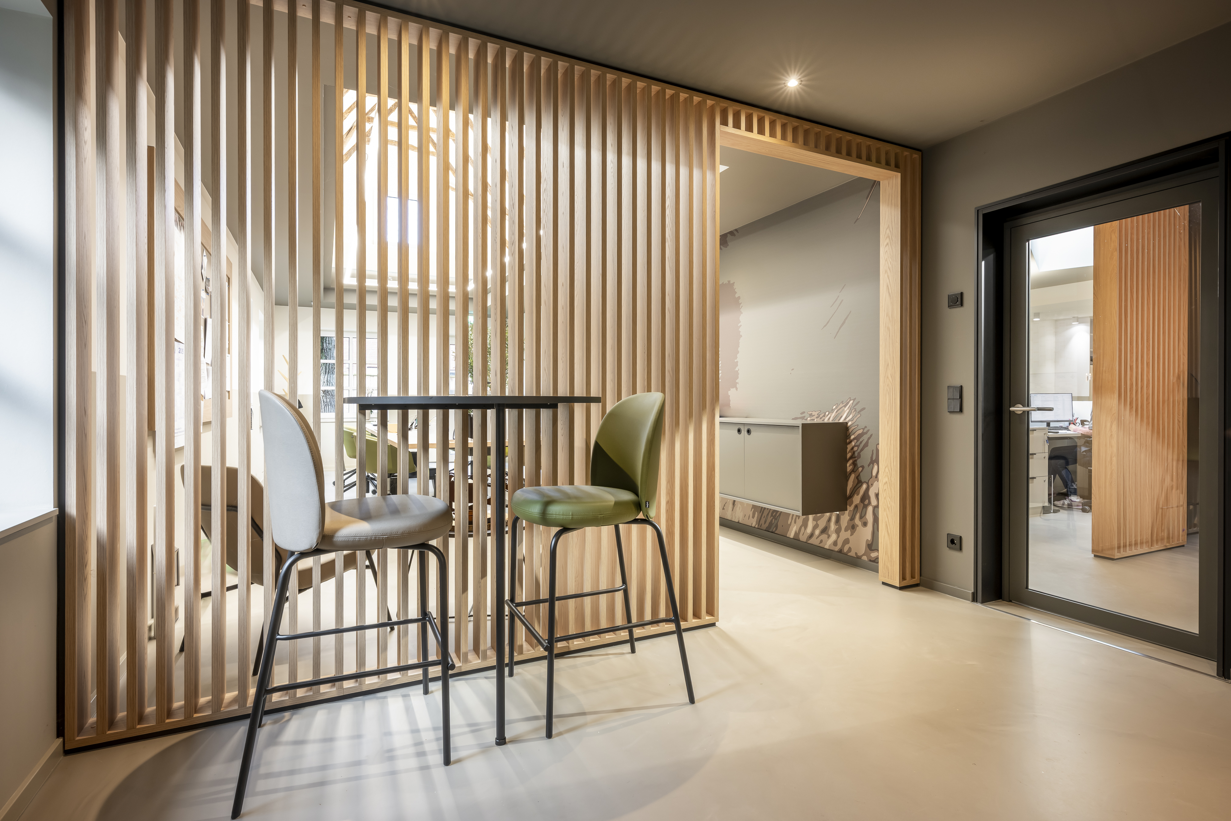 Dankzij veel aandacht voor kleur en materialen is het een prachtig vormgegeven werkomgeving geworden met de nadruk op eigentijds, warm en rust!