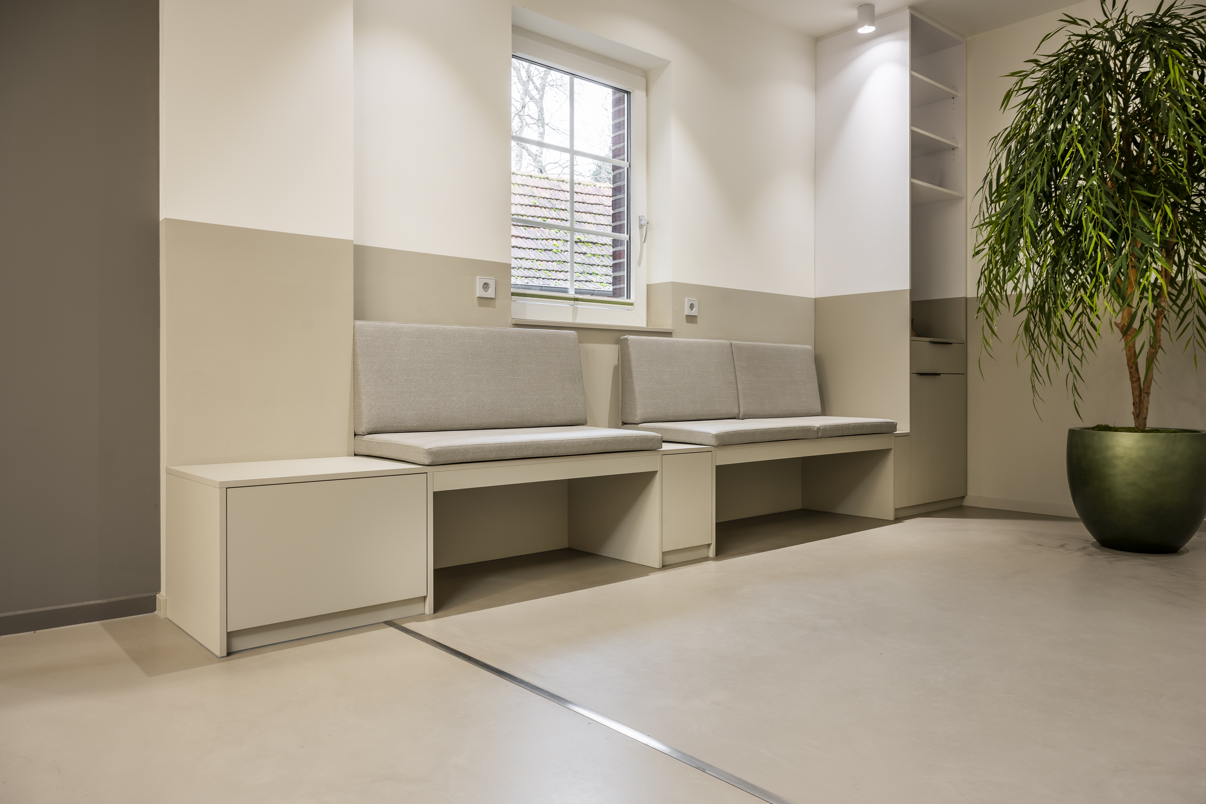 Door de opdrachtgever is er voor gekozen om het bestaande meubilair waar mogelijk te hergebruiken. Hierdoor heeft het project extra gewonnen aan duurzaamheid. Het eindresultaat is verbluffend en het project is tot volle tevredenheid en binnen budget afgerond. Wij bedanken coöperatie 'Onze Huisartsen' voor het in ons gestelde vertrouwen!