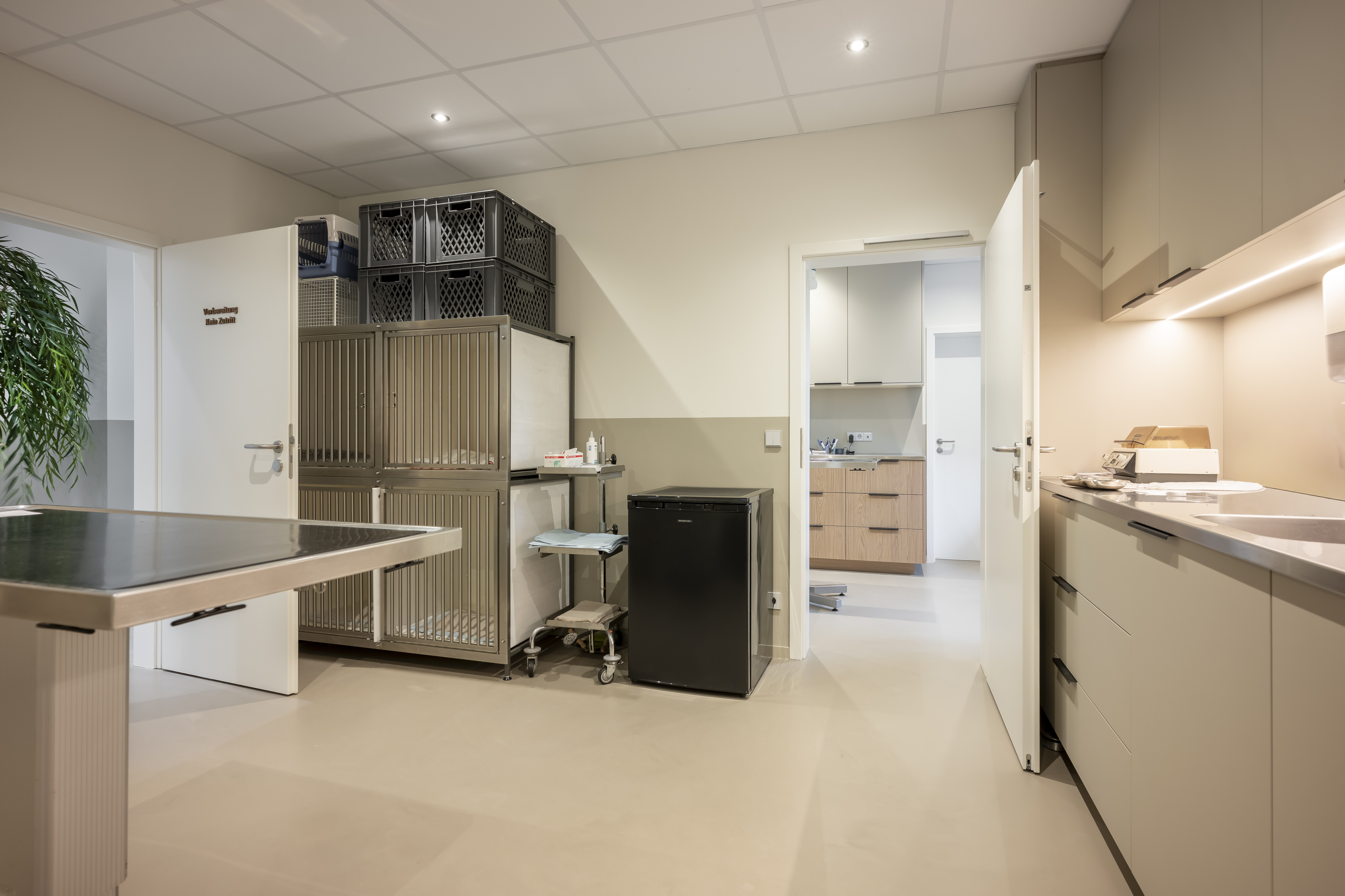 Niet alleen de dieren zijn hier de bezoekers natuurlijk ook hun baasjes. Het ontwerp heeft een klinische uitstraling die past bij een dierenartspraktijk, maar wel gecombineerd met warmte en een vriendelijke sfeer. Daarnaast moesten alle oplossingen voldoen aan strikte hygiëne-eisen.